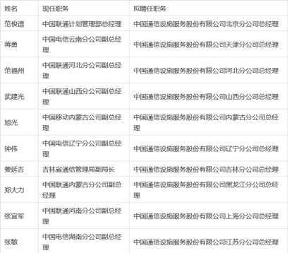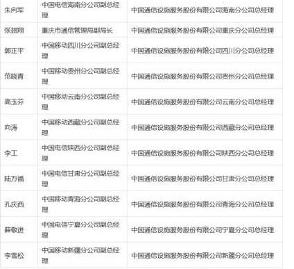 赴铁塔公司任职的31省运营商、通信管理局高管名单