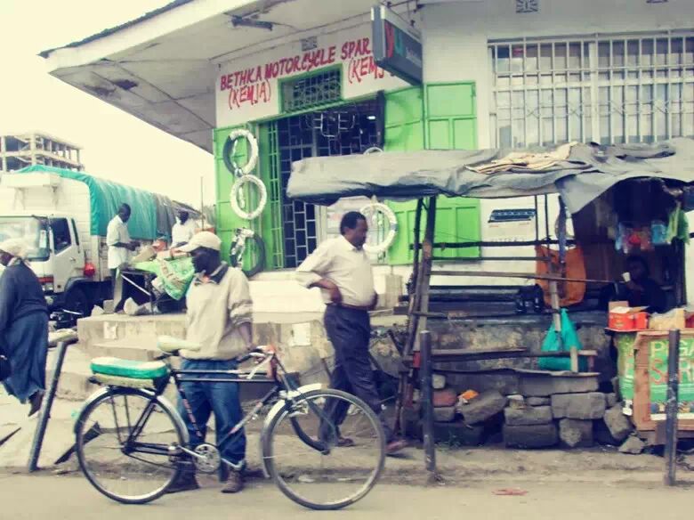 天色不早,要赶去纳瓦沙看河马Hippo,再次路过这个小镇,应该是Nakuru Town。看到这位自行车哥了吗,这可是出租车哦,不过是人力两轮的,后座可是有垫子的哦,这是为顾客准备的,完全是厚厚的诚意啊!想不想坐一个呢?