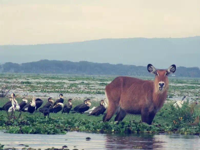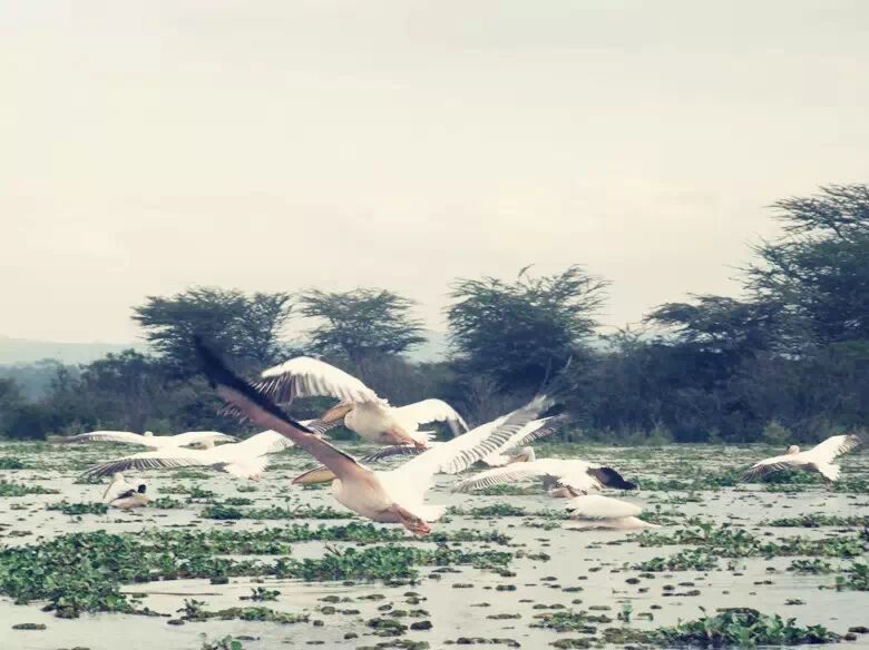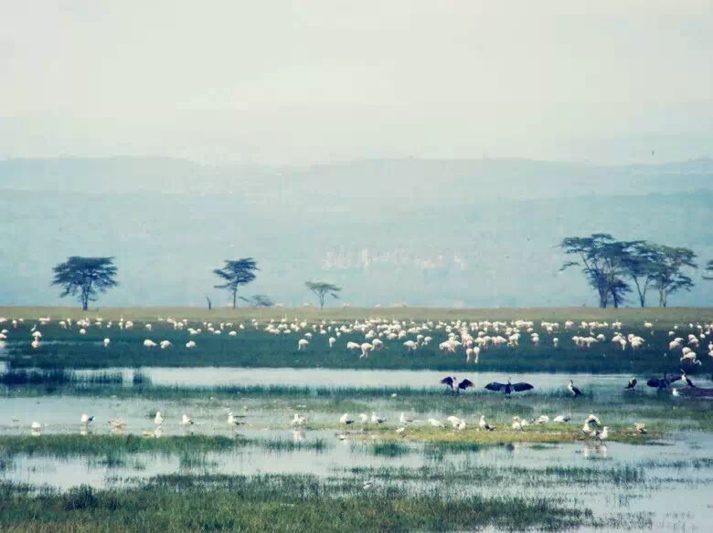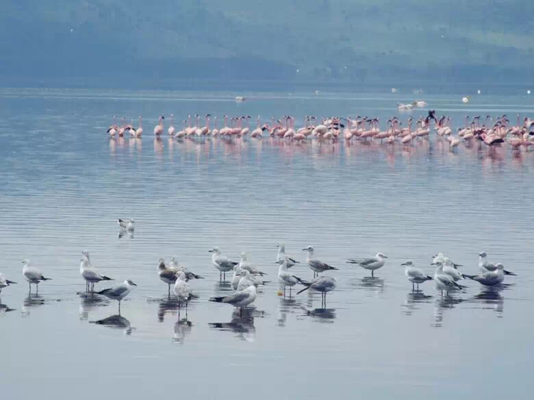 这就是传说中的纳库鲁湖了,海拔1753~2073米,占地面积188平方公里,有约200多万只火烈鸟,占世界火烈鸟总数的三分之一,被誉为“观鸟天堂”。当然我来得不是时候吧,没能太好的验证。还有就是,纳库鲁湖处于火山带,湖水盐碱度较高,适宜作为火烈鸟等一系列鸟类主食的浮游生物生长,这是成为鸟天堂的原因吧。