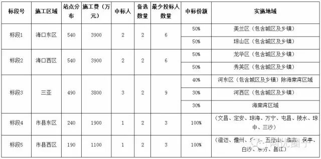 中国移动海南公司2016-2017年室分系统工程项目计划建设2000个室分站点,预计施工费用1.46亿元,6家公司中标,详情如下。