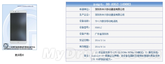 此前,nubia官方已经多次曝光nubia X6的消息,包括拍照样张、进口牛皮皮套等等,但有关该机的具体配置信息一致三缄其口。从上次拍照样张的Exif信息中得知,该机的具体型号为NX601J。现在,经工信部入网许可网站查询,该机已经通过入网许可。