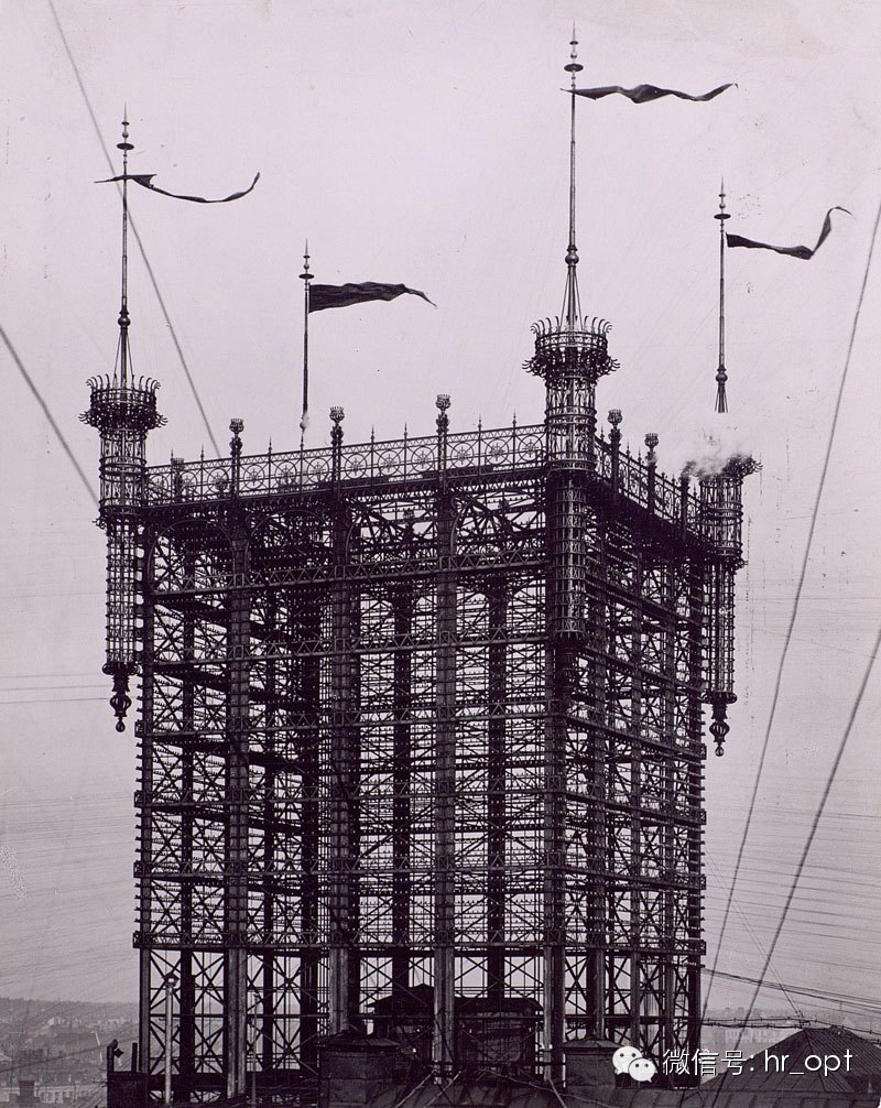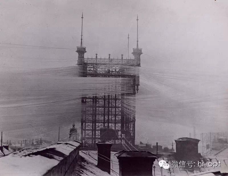 条电话线连接在这里。1913年,该铁塔退役后,一直被保留作为地标建筑。直到1953年,由于火灾而拆除。