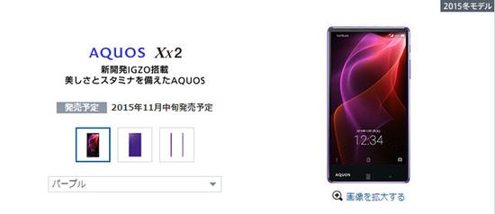 黑白紫三色夏普AQUOS Xx2(图片引自SoftBank)