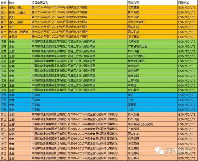 【网优圈】2016年全国省级别日常优化中标公司一览:贵州、江苏、江西、浙江 想回家的快关注啦~~(连载中)