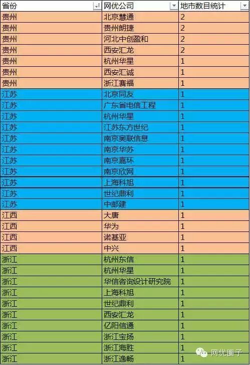 统计各省中标最多的网优公司如下: