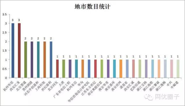 网优公司中标地市分析:(浙江、江苏、江西省的中标网优公司均示为1个地市的方式统计)