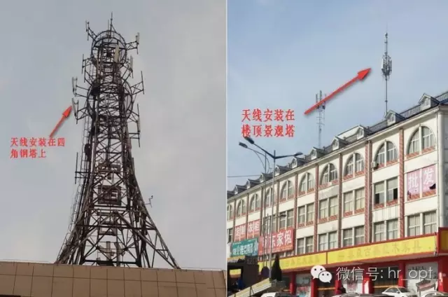天线有很多不同的安装方式,下面列举了一些天线安装在不同地方的照片,当你看见这些天线,那么这个天线附近就应该有我们的基站了。