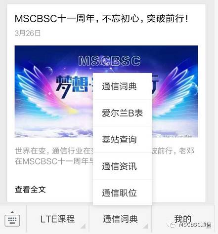 先说一下,通信词典已关联 MSCBSC通信 公众号,以后你可以直接在公众号下的菜单进入