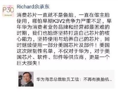 华为、海思总裁连夜发文:面对美国封杀,华为将启用“备胎”
