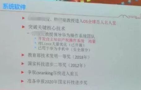有微博网友曝光了一份PPT,在这份名为系统软件的幻灯中可以看到由某教授领导华为操作系统团队开发了自主产权操作系统,该系统被命名为鸿蒙。这次事件华为或转正备胎“鸿蒙”。