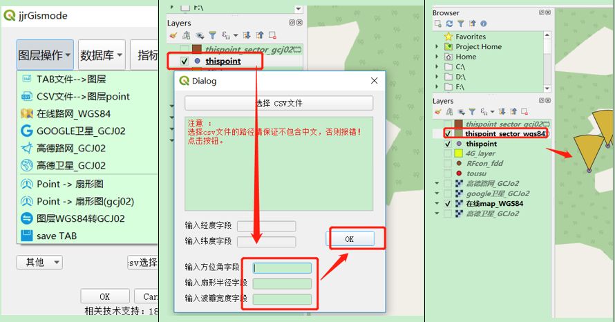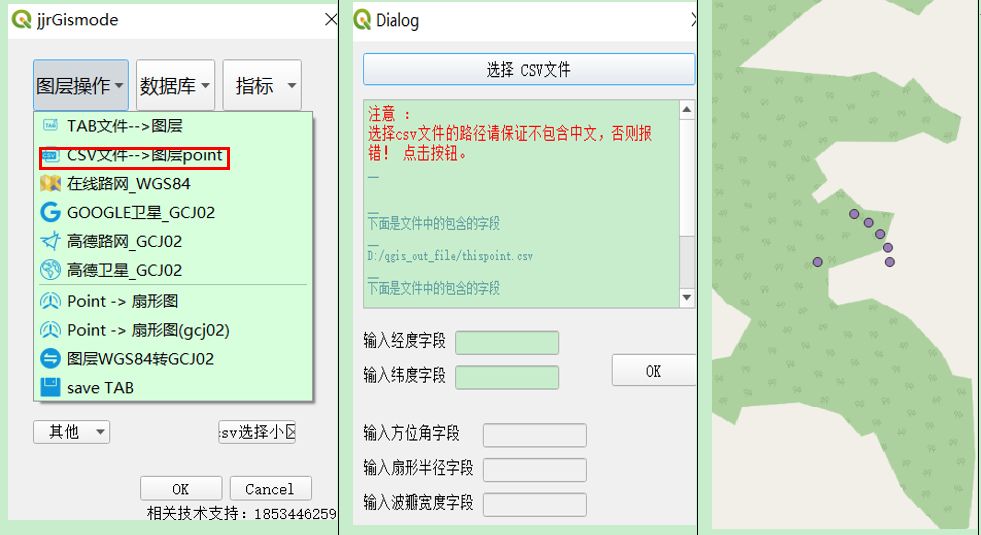 点击 “CSV文件制作点point图层”弹出这个窗口后