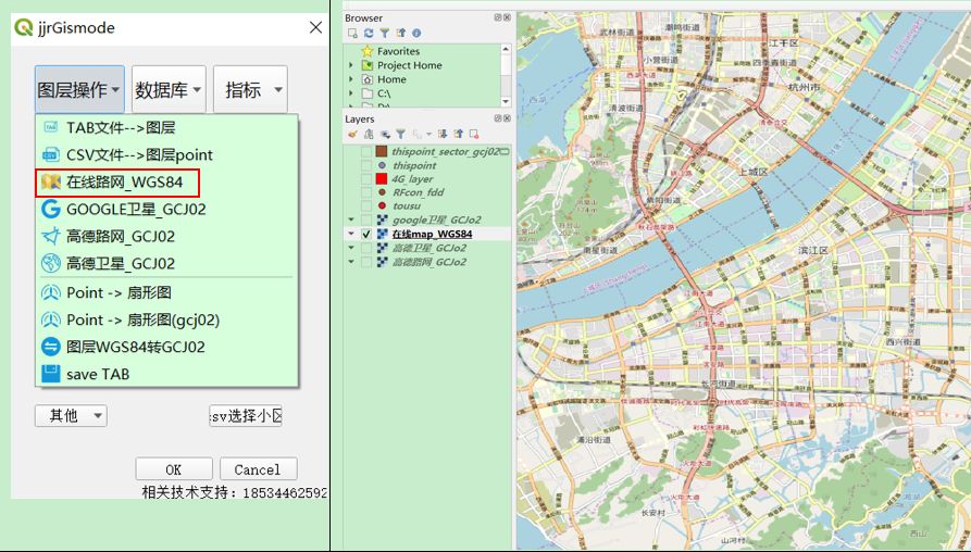 点击 “在线路网_WGS84”弹出这个窗口后选择对应功能