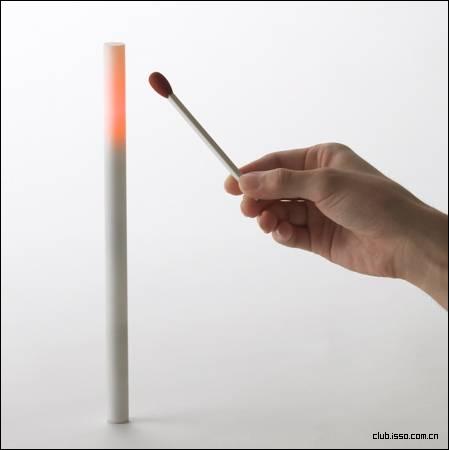 这款LED灯的使用过程完全模拟了蜡烛:要点亮灯泡需要用磁性的“火柴”轻轻的触碰一下灯的顶端。而要将灯熄灭则则要像吹灭蜡烛一样吹一口气。