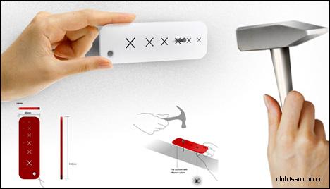 你有没有在钉钉子的时候被锤子砸到手的经历,现在有了这个插板就可以安全的钉钉子了。它有几个不同大小的十字形插孔,你只要把钉子夹在适当的插孔里,然后手拿插板边缘,就可以轻松地钉钉子了。很实用的设计。