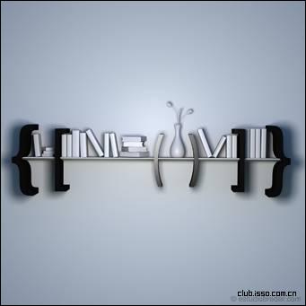 这款书架的设计非常新颖,用小括号、中括号和大括号的造型来制作隔断,凸显趣味的同时,也不失实用。