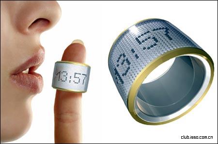 这款新颖的指环表是利用电机来驱动指环表面的金属球,从而实现不同的反光效果,进而通过明暗度的不同来显示时间的,相当的有意思。
